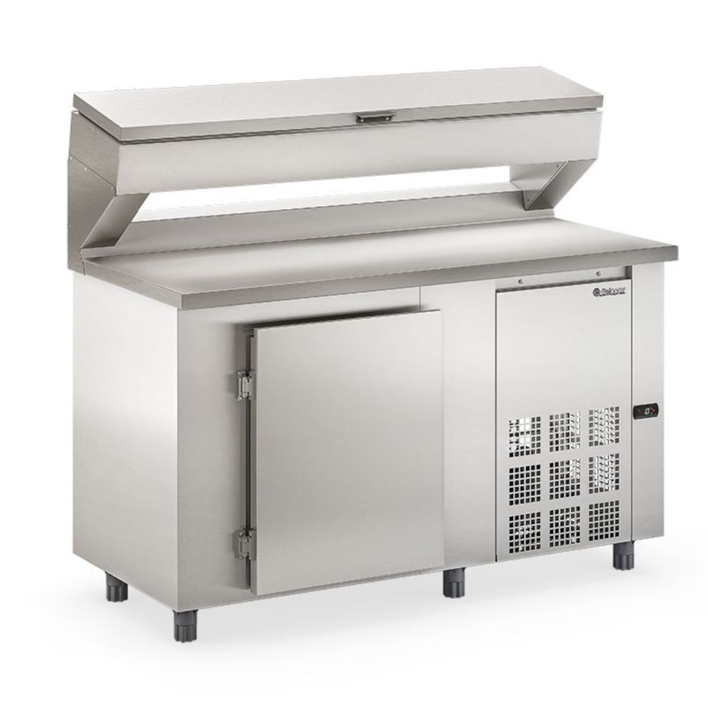 Balcão Condimentado 1 Porta e 8 Gns 1/4 com Tampa GBPZ150TCBAI Gelopar. Ideal para pizzarias, hotéis, restaurantes, clubes, lanchonetes e similares. Conservação e exposição de frios, laticínios, bebidas e condimentos para preparo de pizzas e alimentos diversos (não congelados). Temperatura: 0° a +7°C. Refrigeração: No balcão refrigerado: Ar forçado com evaporador aletado. No compartimento superior para cubas: Evaporador tipo serpentina. Controlador eletrônico com indicador de temperatura. Degelo: Manual. Portas: Cegas em Aço Inox 430. Tampa cega basculante em Aço Inox 430 (não requer utilização de tampas para cubas). Resistência no quadro de portas. Revestimento: Interno em aço galvanizado e fundo em Aço Inox 430/ Externo: Tampo em Aço Inox 304 escovado; Gabinete em Aço Inox 430. Traseira e Fundo em Aço galvanizado. Motor do lado direito, para quem está de frente para as portas. CAPACIDADE DE CUBAS: 8 Cubas GN 1/4. CONSUMO: 4,72Wh/dia. TEMPERATURA: 0° a +7°C. PESO: 121Kg. DIMENSÕES DAS CUBAS(CxAxL): 26,5x16,2x10cm. DIMENSÕES EXTERNAS(CxAxL): 150x128,5x70cm. Equipamento certificado conforme Portaria Inmetro nº 148/2022. Balcão Condimentado 1 Porta e 8 Gns 1/4 com Tampa GBPZ150TCBAI Gelopar é na Atau.